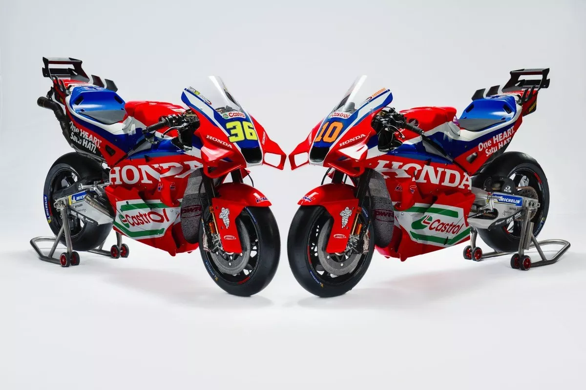 La nueva Honda RC213V, bajo la denominación Honda HRC Castrol, ha sido presentada con una decoración en los colores históricos de HRC: azul, rojo y blanco. La gran novedad es el patrocinio de Castrol, que sustituye a Repsol en la parte baja lateral de la moto. Repsol, tras la salida de Marc Márquez, redujo su aporte en 2023, culminando así una alianza de casi 30 años iniciada en la era de las 500cc.